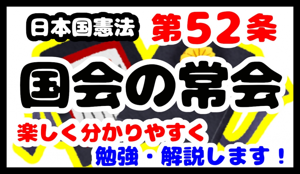 今回は日本国憲法第52条「国会の常会」について勉強・解説していきます!できる限り、子供や小学生、中学生にも分かるように解説していきたいと思います。